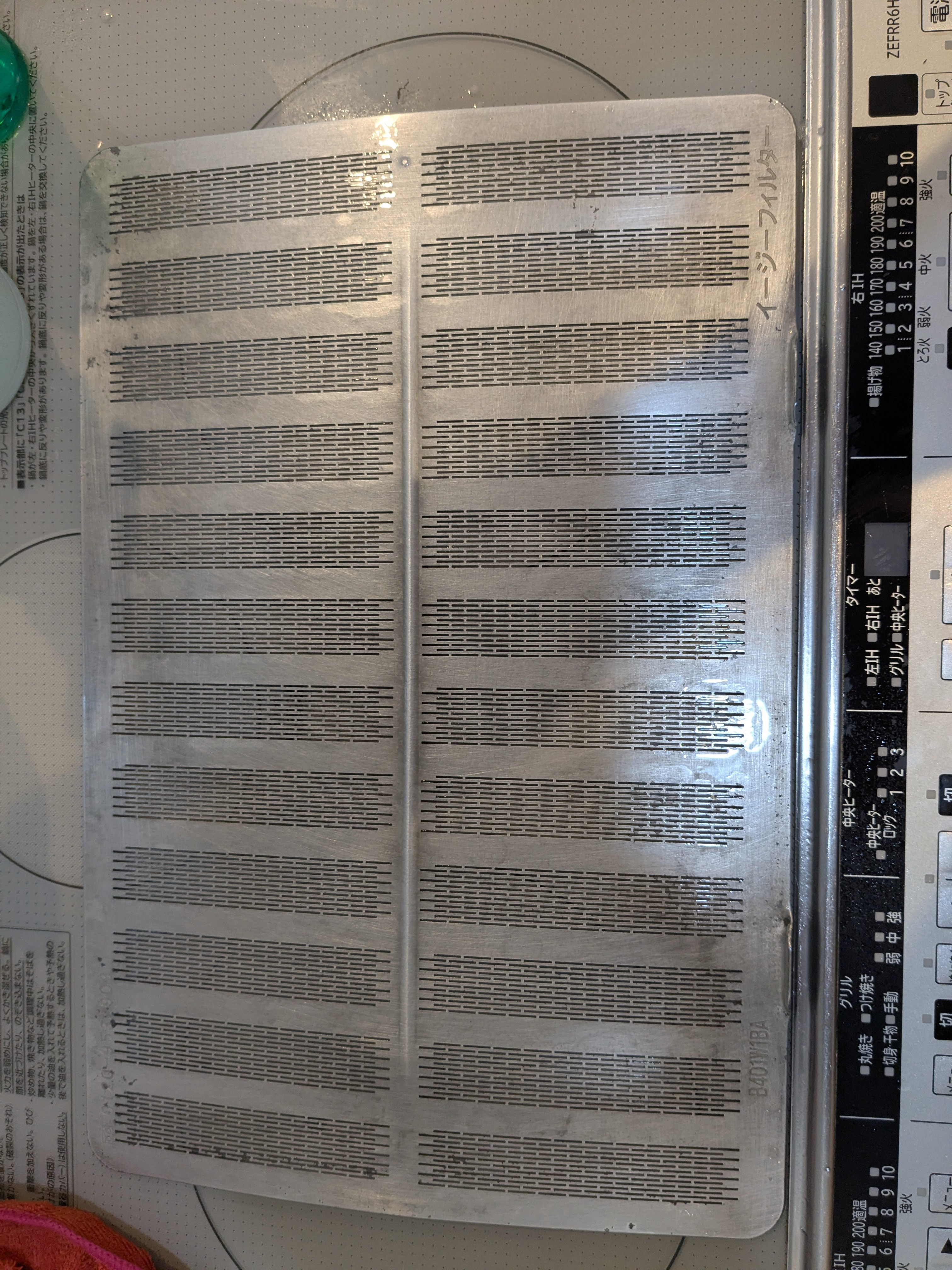 油汚れが酷いと強いアルカリ洗剤を塗布して放置してると、こんな感じに焼けてしまいます。